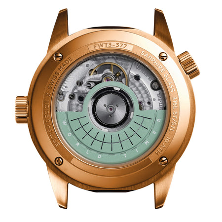 Reliable Mechanics - The World Timers use the Sellita SW331-2. This Swiss automatic calibre features a rotating disc instead of a GMT hand, and has 25 jewels and a 56-hour power reserve. This is the Elaboré version of the movement and is adjusted for accuracy in four positions. As a finishing touch, the calibre has been given Top Grade finishing and a custom rotor that is colour-matched to the world map on the 24-hour disc.
