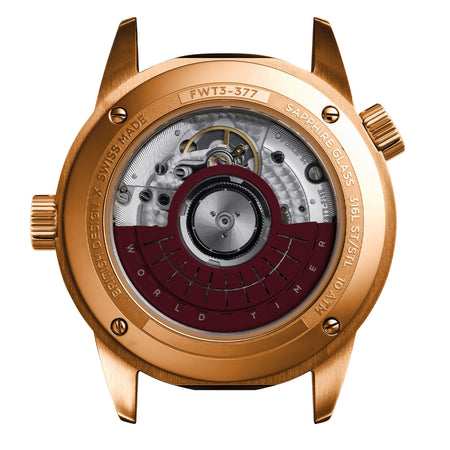 Reliable Mechanics - The World Timers use the Sellita SW331-2. This Swiss automatic calibre features a rotating disc instead of a GMT hand, and has 25 jewels and a 56-hour power reserve. This is the Elaboré version of the movement and is adjusted for accuracy in four positions. As a finishing touch, the calibre has been given Top Grade finishing and a custom rotor that is colour-matched to the world map on the 24-hour disc.